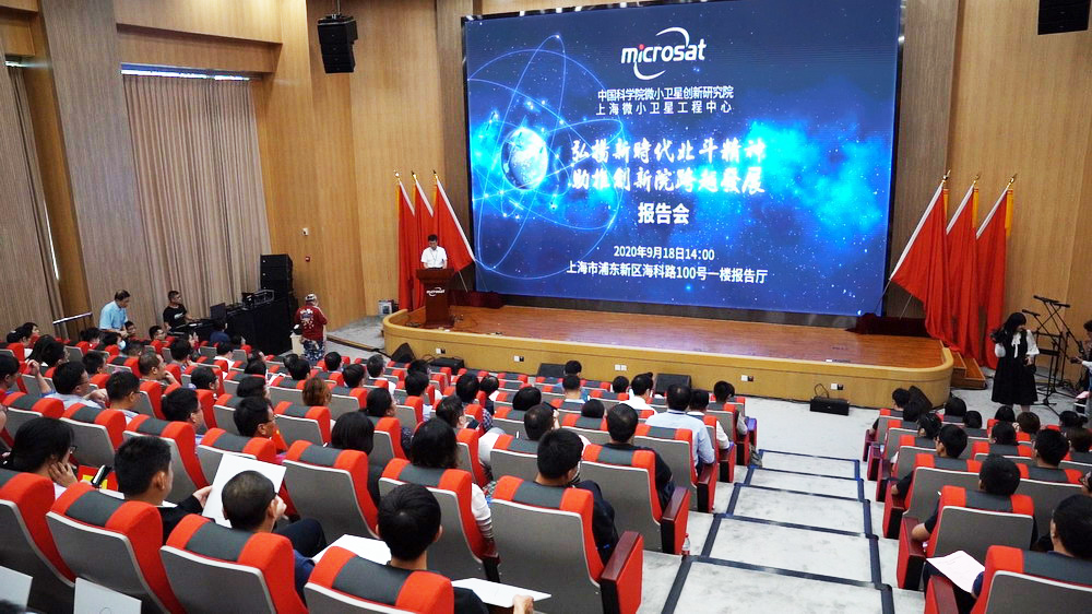 2020年9月18日下午,为进一步响应习总书记号召,切实落实好新时代北斗精神学习要求,作为北斗三号系统建设的重要单位之一,中国科学院微小卫星创新研究院(以下简称“卫星创新院”)党委领导工会、妇委、团委举办了“弘扬新时代北斗精神,助推创新院跨越发展”专题报告会。出席报告会的有上海市科技党委书记刘岩,中科院上海分院分党组书记、副院长、沪区党委书记李正华,上海分院机关青年理论学习小组,共建单位曙光医院党员代表等,报告会由卫星创新院副院长、党委副书记(主持工作)朱振才主持,卫星创新院院长龚建村、副院长林宝军、党委副书记、纪委书记周四根、副院长尹增山及各部门领导、各支部党员代表参加了本次报告会。
