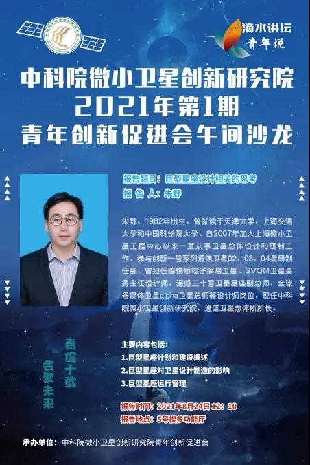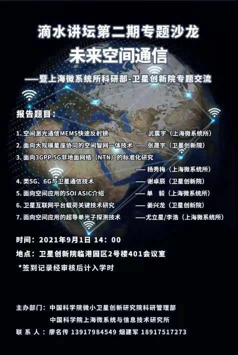 卫星创新院以谋划长远发展为重点,为加强学术沟通,探讨前沿技术探索,提升我们的科研理论水平,在卫星创新院学术委员会的指导下,开设“滴水”系列学术交流活动,“滴水”之意共有三层含义:滴水穿石的坚韧品质、滴水之恩涌泉相报的感恩品质、搬迁临港身处滴水湖之畔的新的征程。